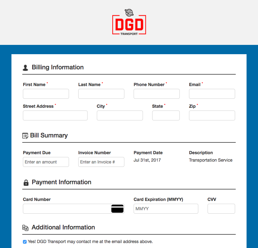 We give you the tools you need to launch an Invoice out to ANY customer or client with the detail you need to communicate and they need to see. Then, your clients get a simple “Click to Pay” button that launches your own Mobile-friendly, Brand-friendly checkout-page with the Invoice-amount PRE-LOADED into their form. It’s simple, elegant, and because it’s mobile and brand-friendly, it makes your customers WANT to actually pay you!